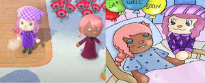 One of the folks who visit my animal crossing stream often is in the hospital. So, I made this fanart. It is a get well soon card featuring our Animal Crossing avatars. I got a bunch of folks to sign it. I hope you get well soon Lola.